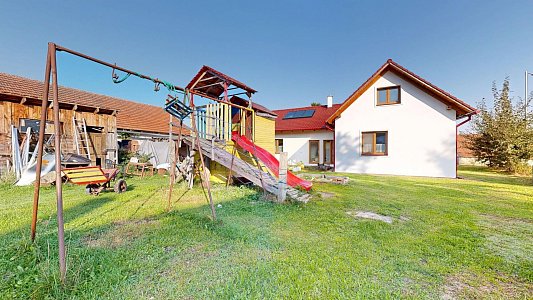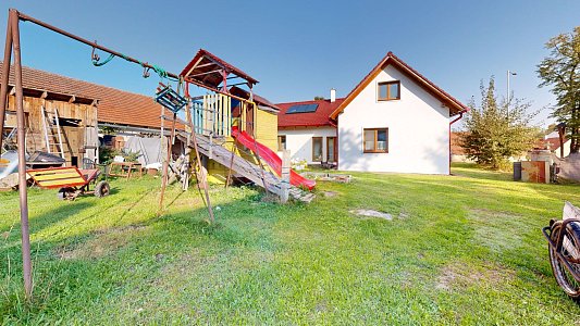vedle domu budova s č. popisným – připravený projekt na garáž a dílnu (ideální pro kutily či podnikání)