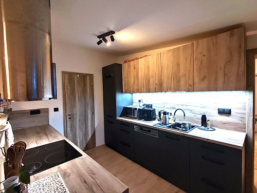 Nemovitost je vybavena novou kuchyňskou linkou se všemi potřebnými spotřebiči, včetně pračky a sušičky. K dispozici je nová moderní koupelna s vanou, skleněnou zástěnou a koupelnovým nábytkem. V celém domě jsou instalována okna s trojsklem, která zajišťují výbornou tepelnou izolaci a přispívají k nižším nákladům na energie. Vytápění je řešeno novým plynovým kotlem.