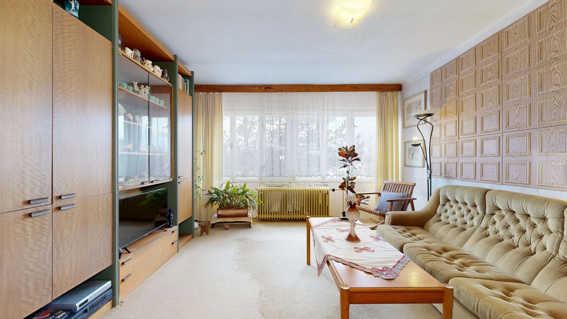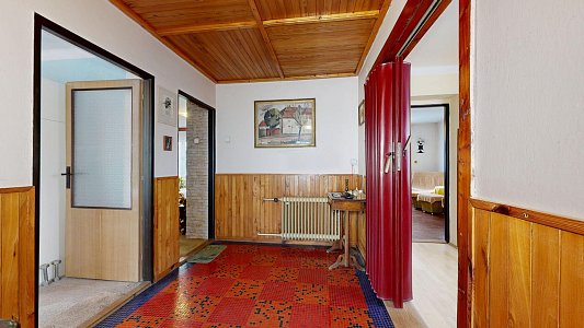 Vytápění domu je flexibilní a lze jej realizovat třemi různými způsoby: pomocí kotle na tuhá paliva, plynového kotle nebo elektrokotlu, což umožňuje přizpůsobit se aktuálním potřebám a preferencím. Dále je součástí domu garáž, která poskytuje praktické řešení pro parkování a úschovu. Podlahy v domě jsou betonové, pokryté kobercem nebo plovoucí podlahou, což zajišťuje snadnou údržbu a komfortní bydlení.